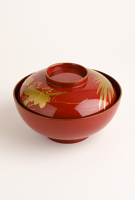 Japanese Vintage Red Lacquer Gold Painted Bowl Velnica From Japan