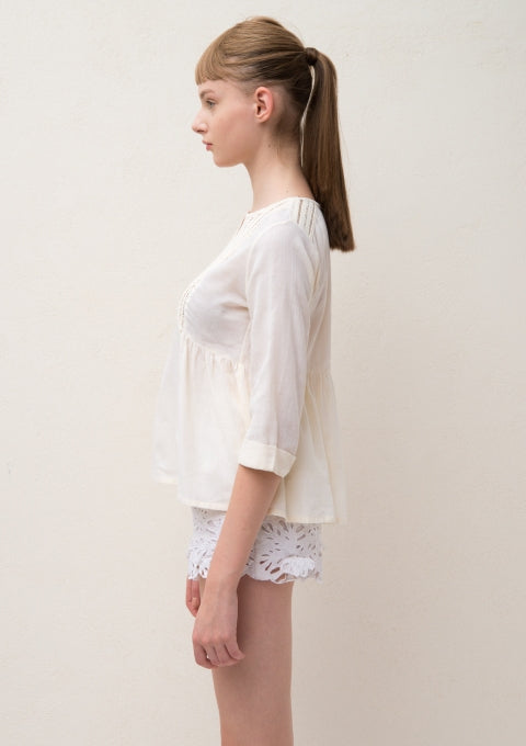 Blouse Tops 100% Cotton Delicate Ladder Lace Women's Velnica From Japan